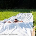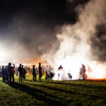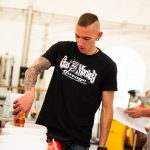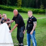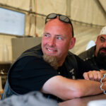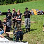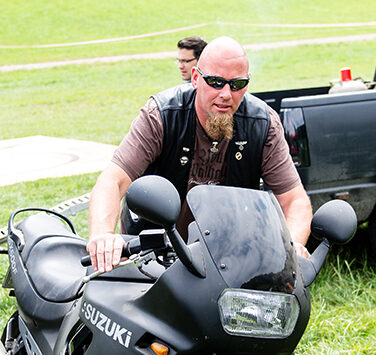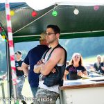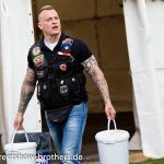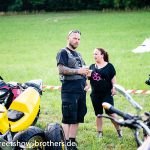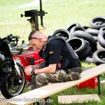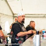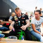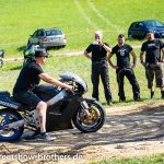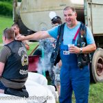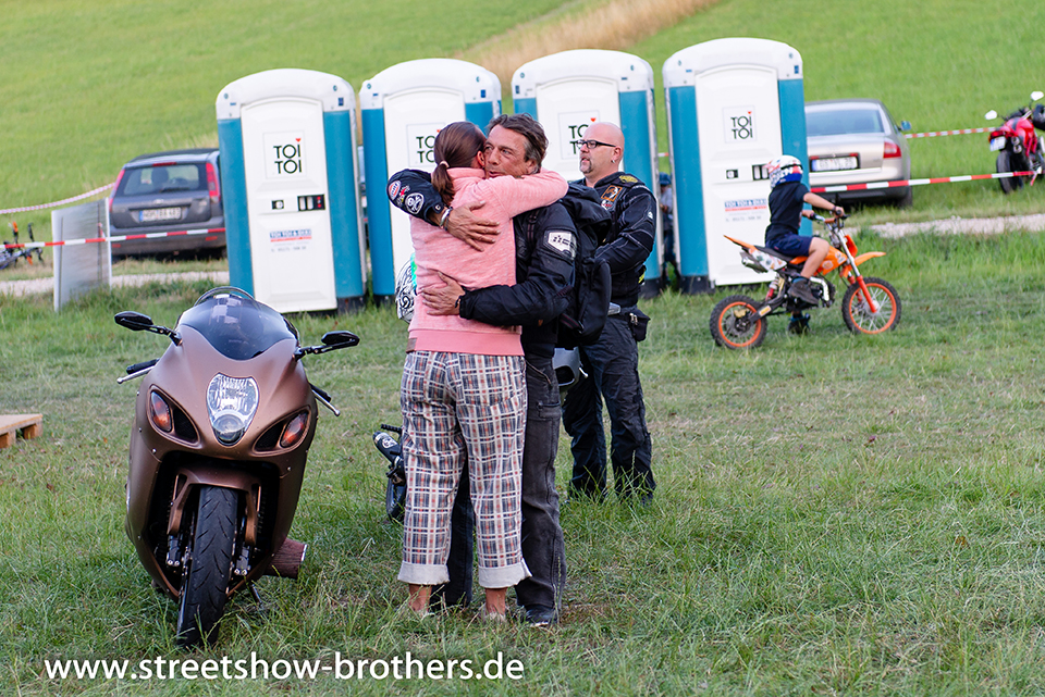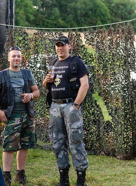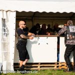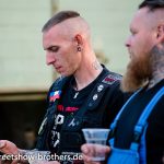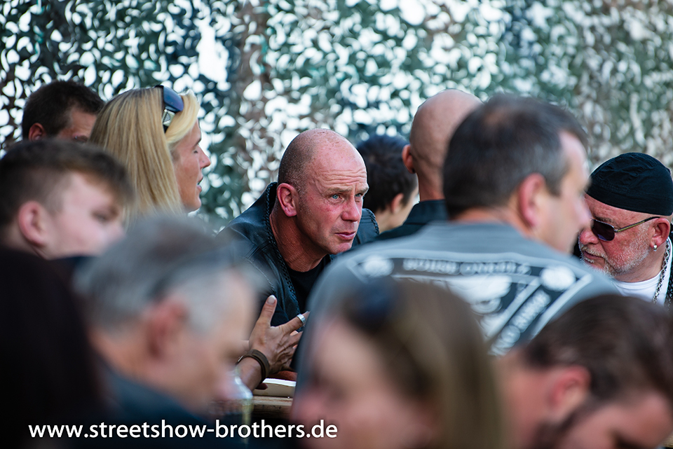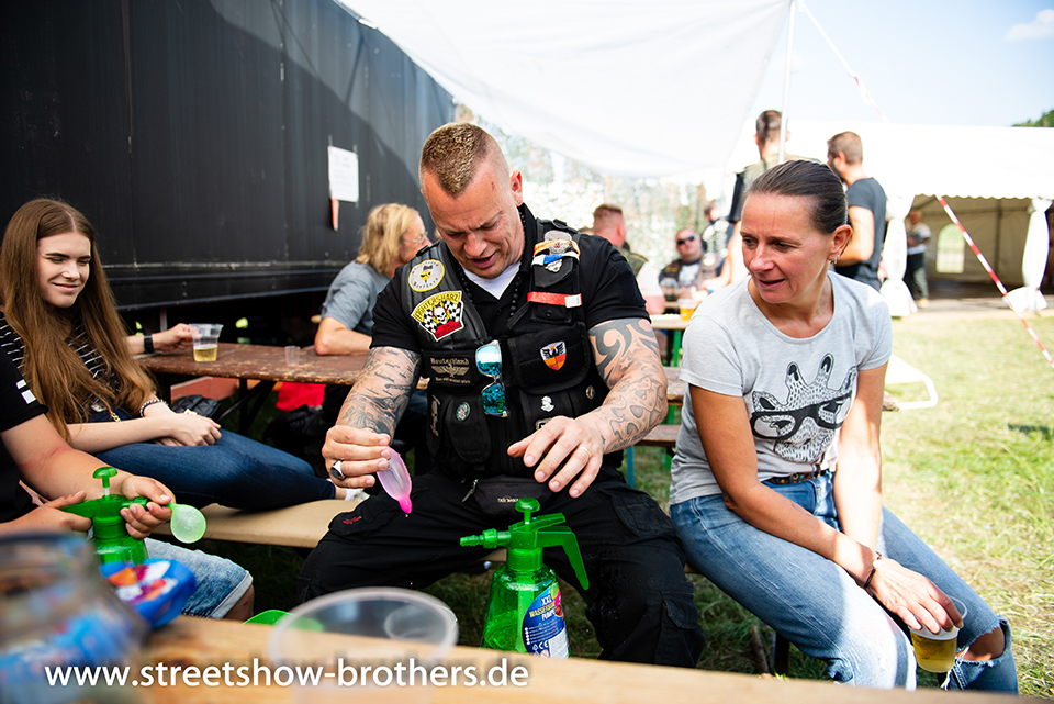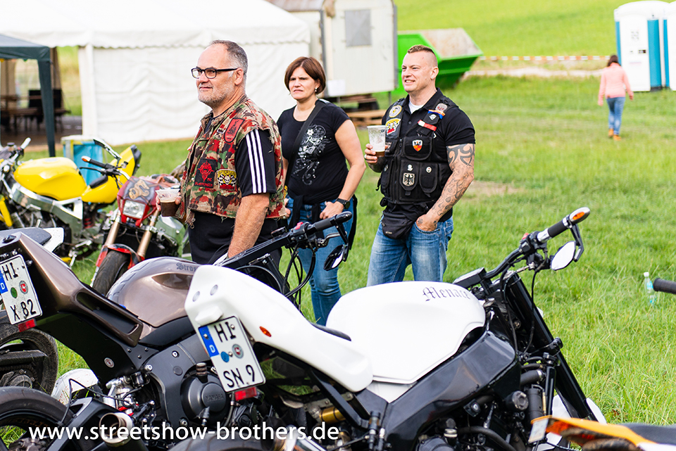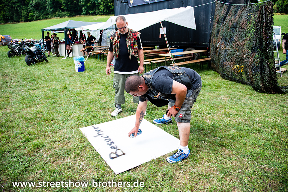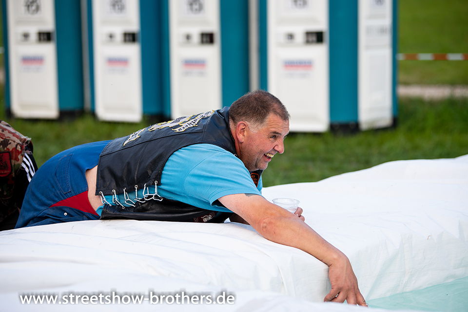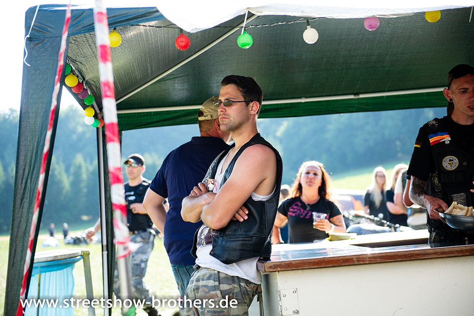 Zwischen Zelten, Bikes und Biertischen herrschte das pure Chaos – aber das gute Chaos. Einer brannte gerade einen fetten schwarzen Streifen in den Boden, während der andere sein Grillgut suchte (meistens direkt neben dem Vorderrad). Überall Gelächter, laute Musik und Menschen, die man kaum kannte, aber trotzdem sofort „Bruder“ nannte.